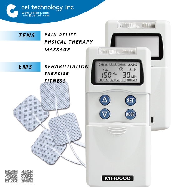 MH6000 TENS EMS Combo integrates EMS and TENS functions with 7 treatment modes. This unit is a hybrid stimulator which can be used for muscle stimulation and pain relief. The compact design of MH6000 makes it easily to carry. Users are able to use the device anywhere at anytime.